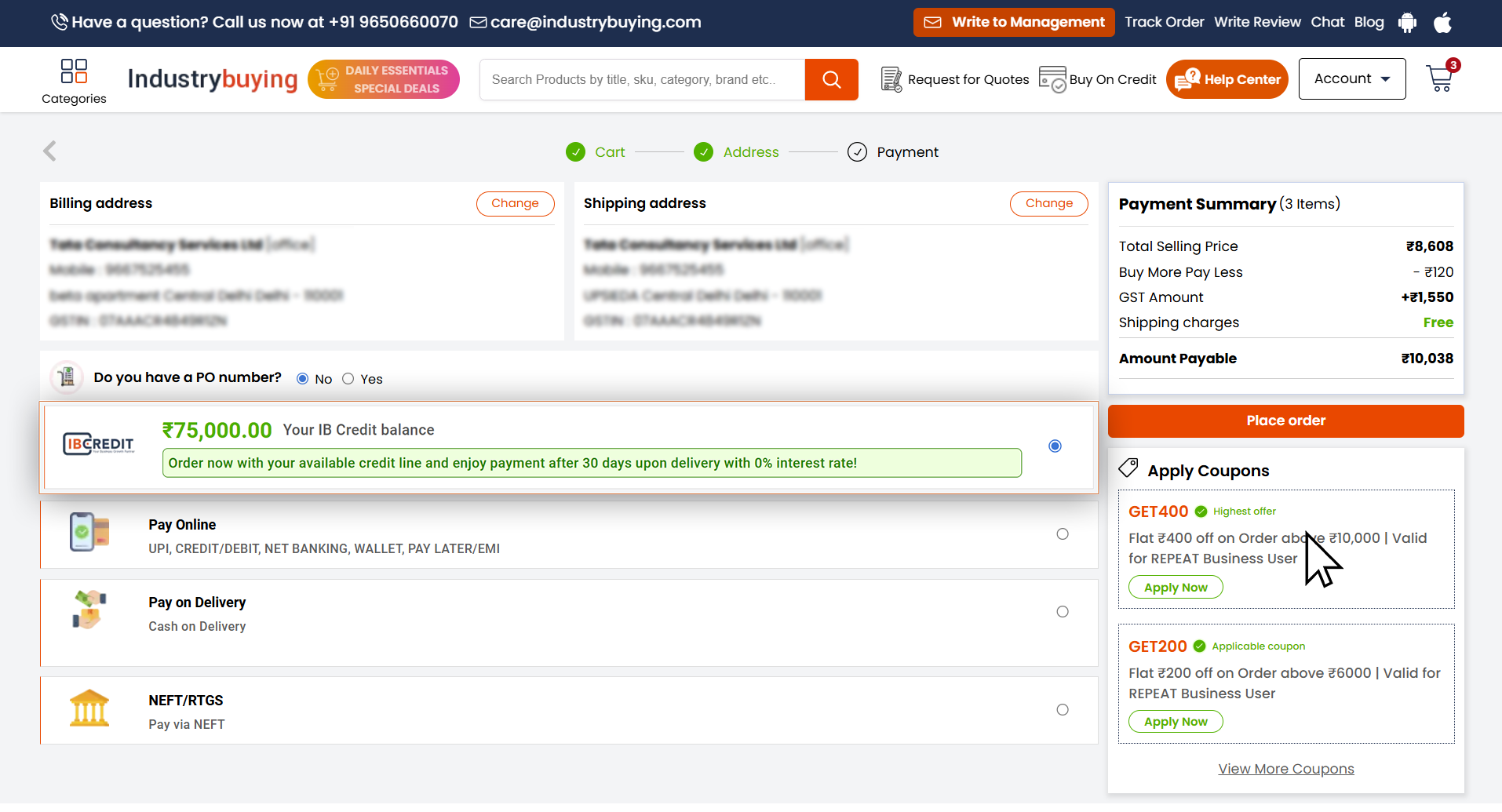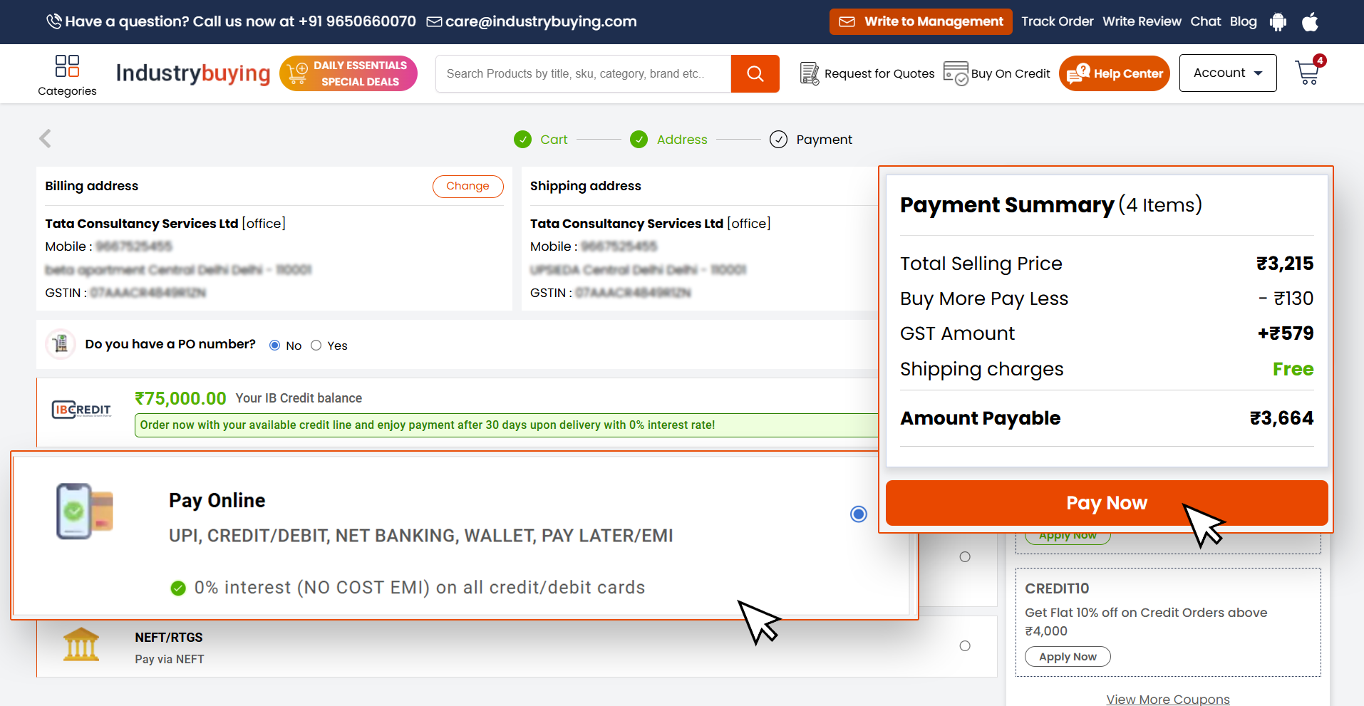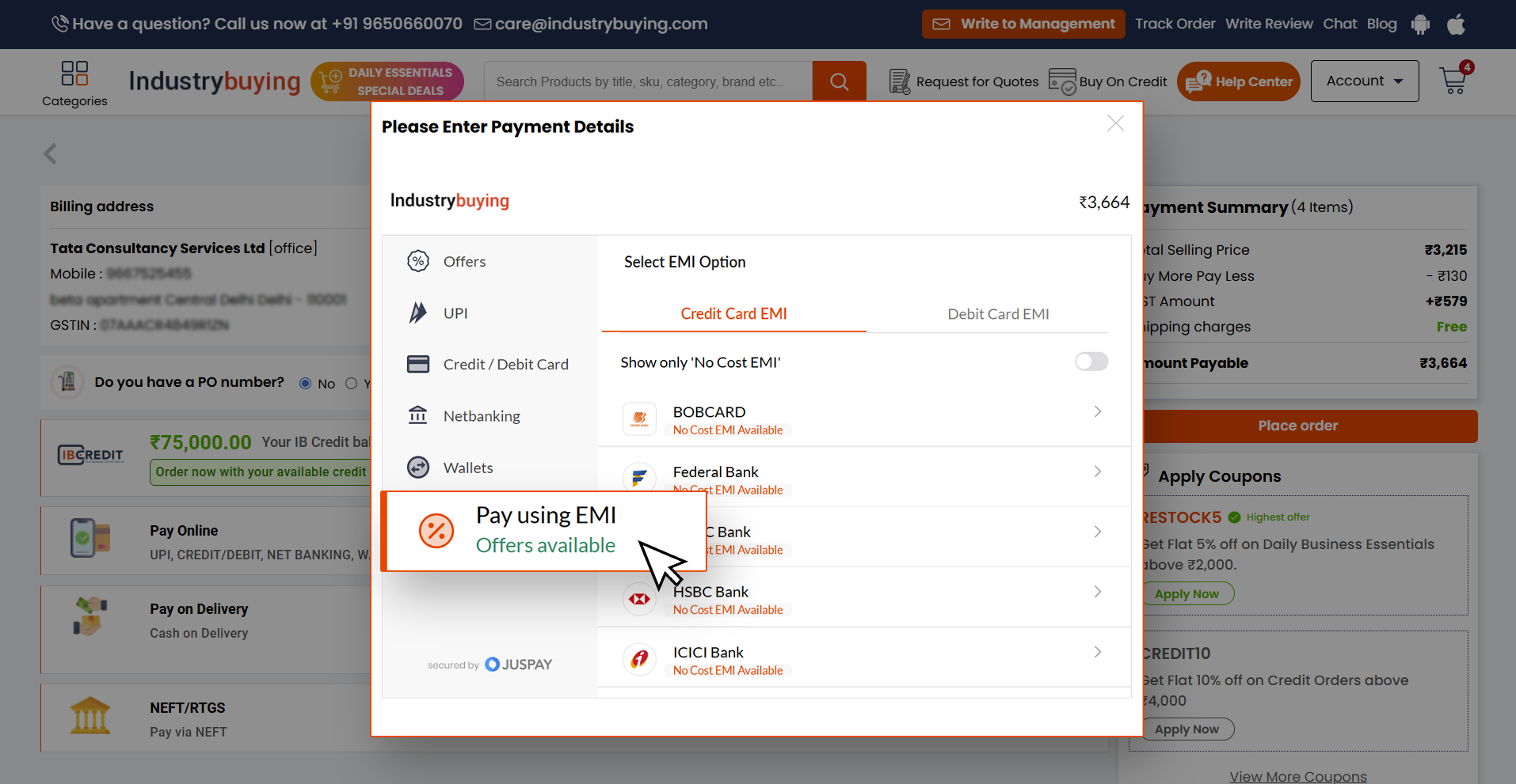 - Industrybuying offers EMI options for credit card payments, enabling customers to pay for their purchase in monthly installments.