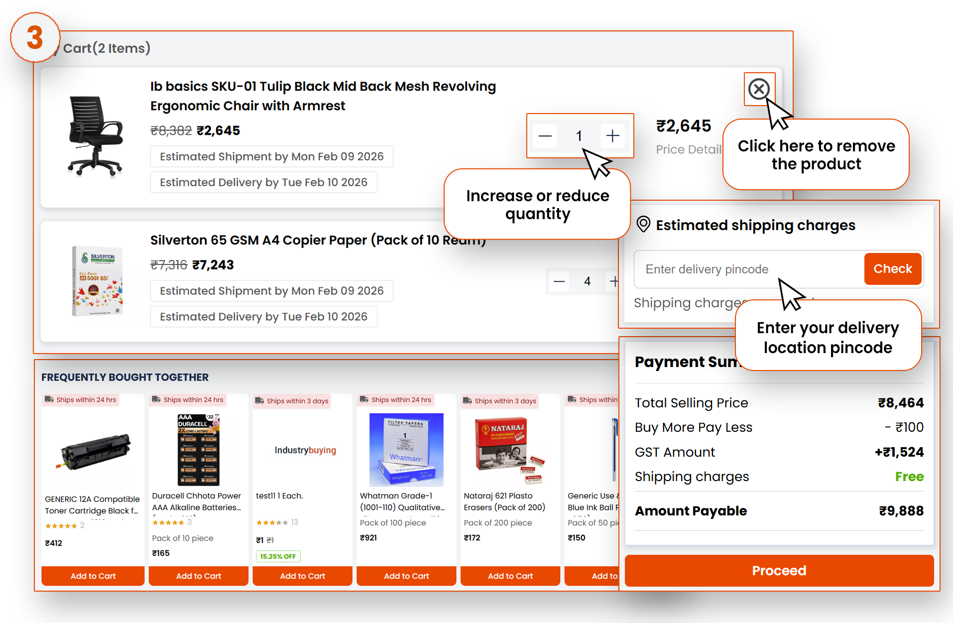 Verify the address for shipping and billing, click on Proceed to Pay. Select the payment mode, click on Pay Now. Once the payment is processed, you’ll receive an order confirmation with your unique order number and the estimated delivery date.