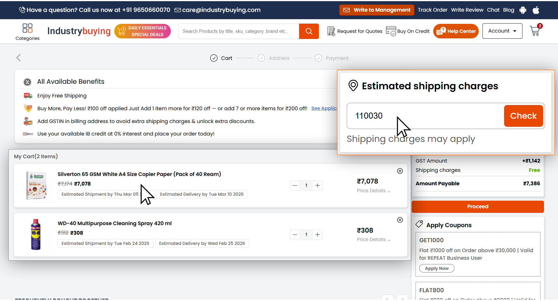 - Enter Your PIN Code: In the cart, enter your PIN code to get the estimated delivery date for all items in your cart.